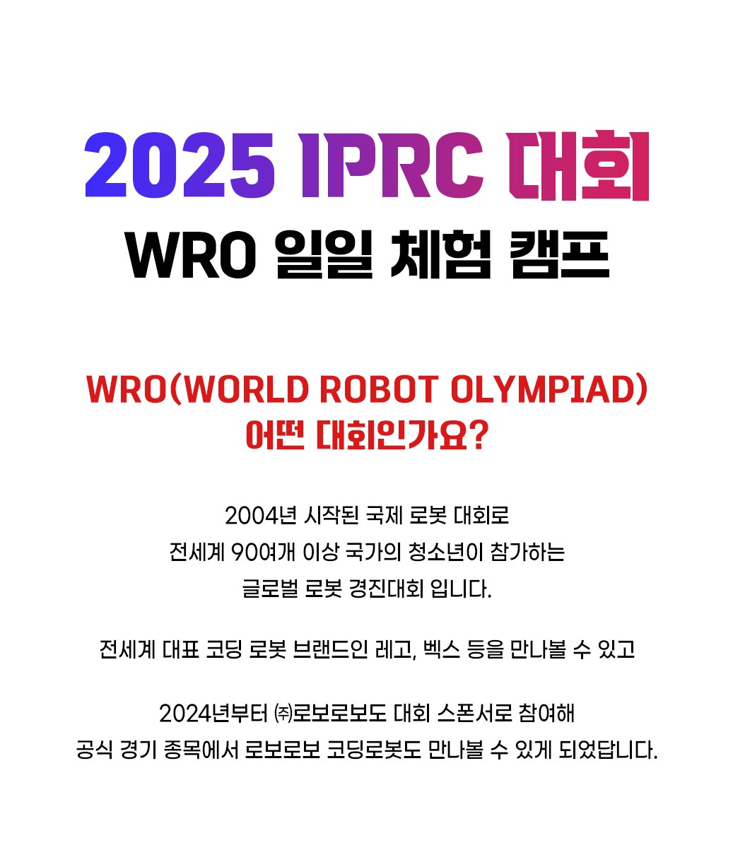 2025 IPRC WRO 일일 체험 캠프 공지 전달드립니다